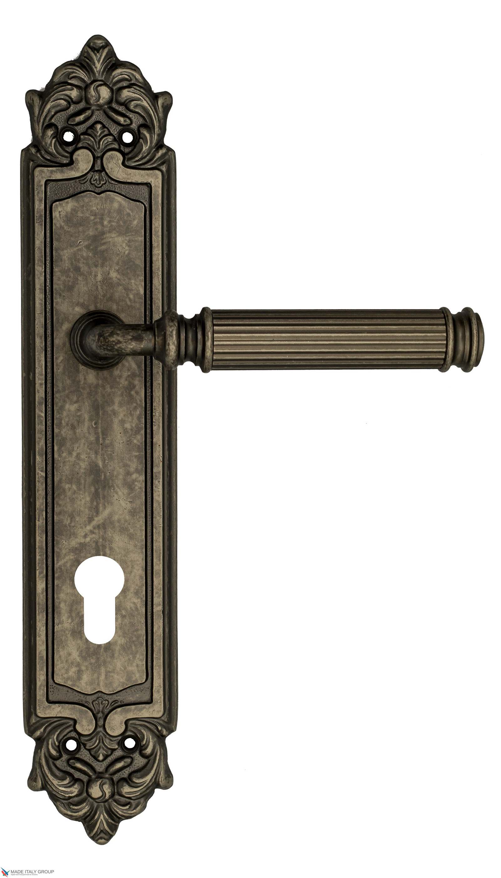 Дверная ручка Venezia MOSCA CYL на планке PL96 античное серебро