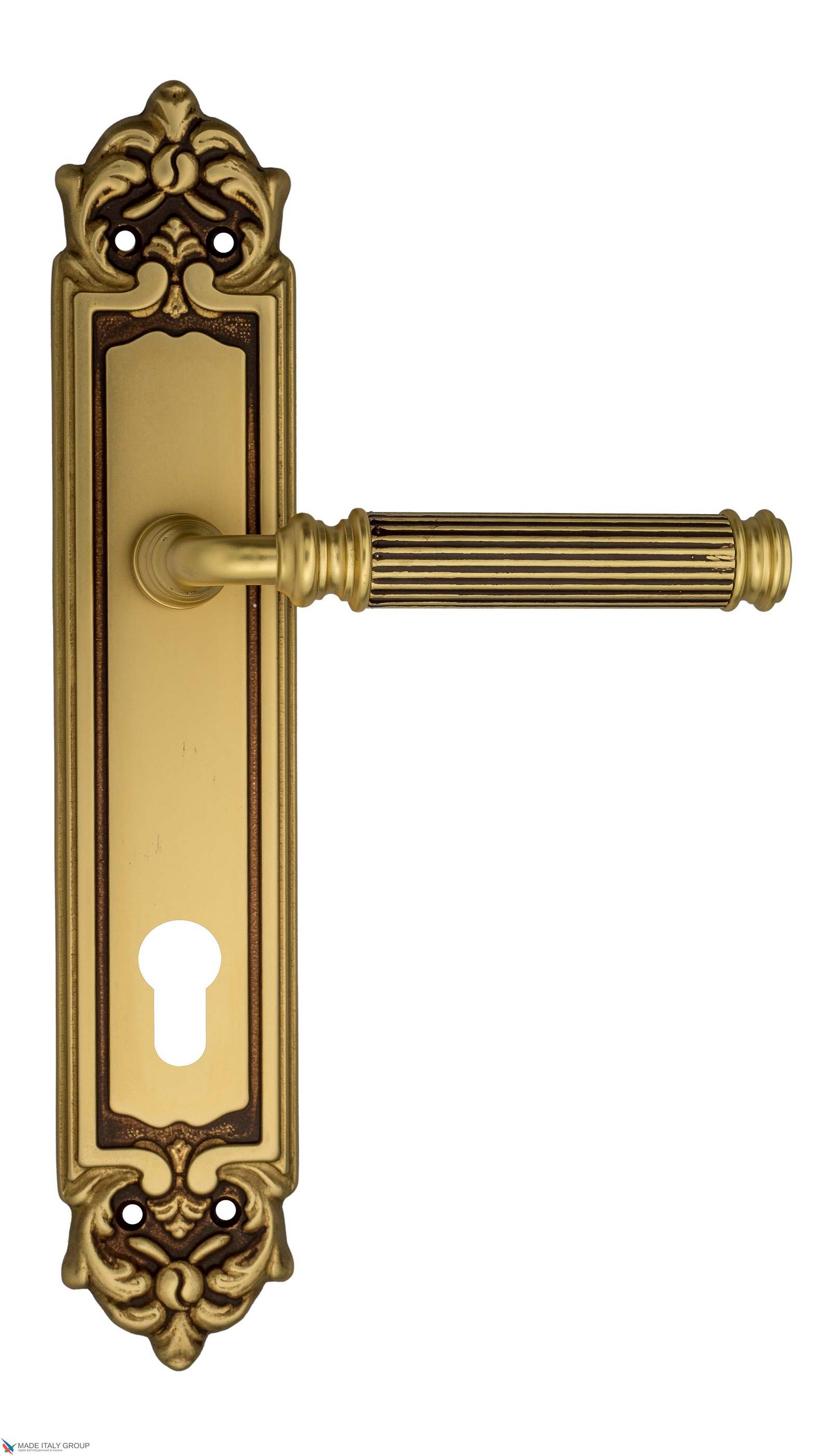 Дверная ручка Venezia MOSCA CYL на планке PL96 французское золото + коричневый