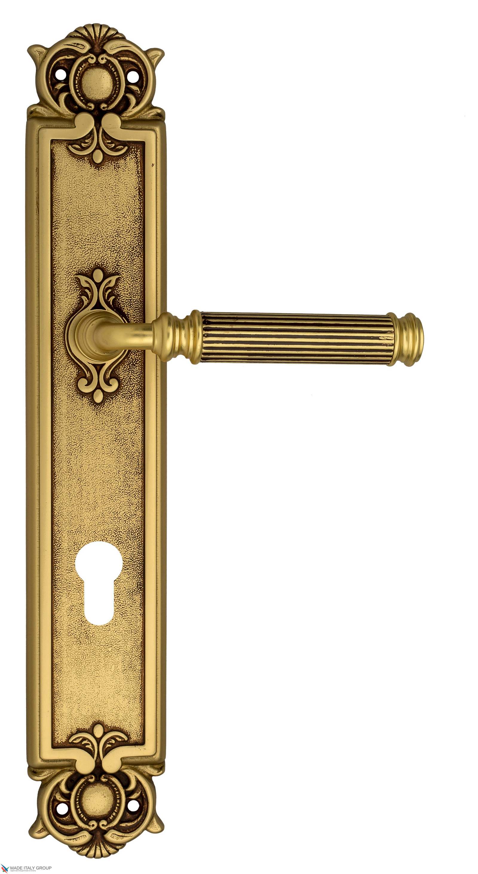 Дверная ручка Venezia MOSCA CYL на планке PL97 французское золото + коричневый