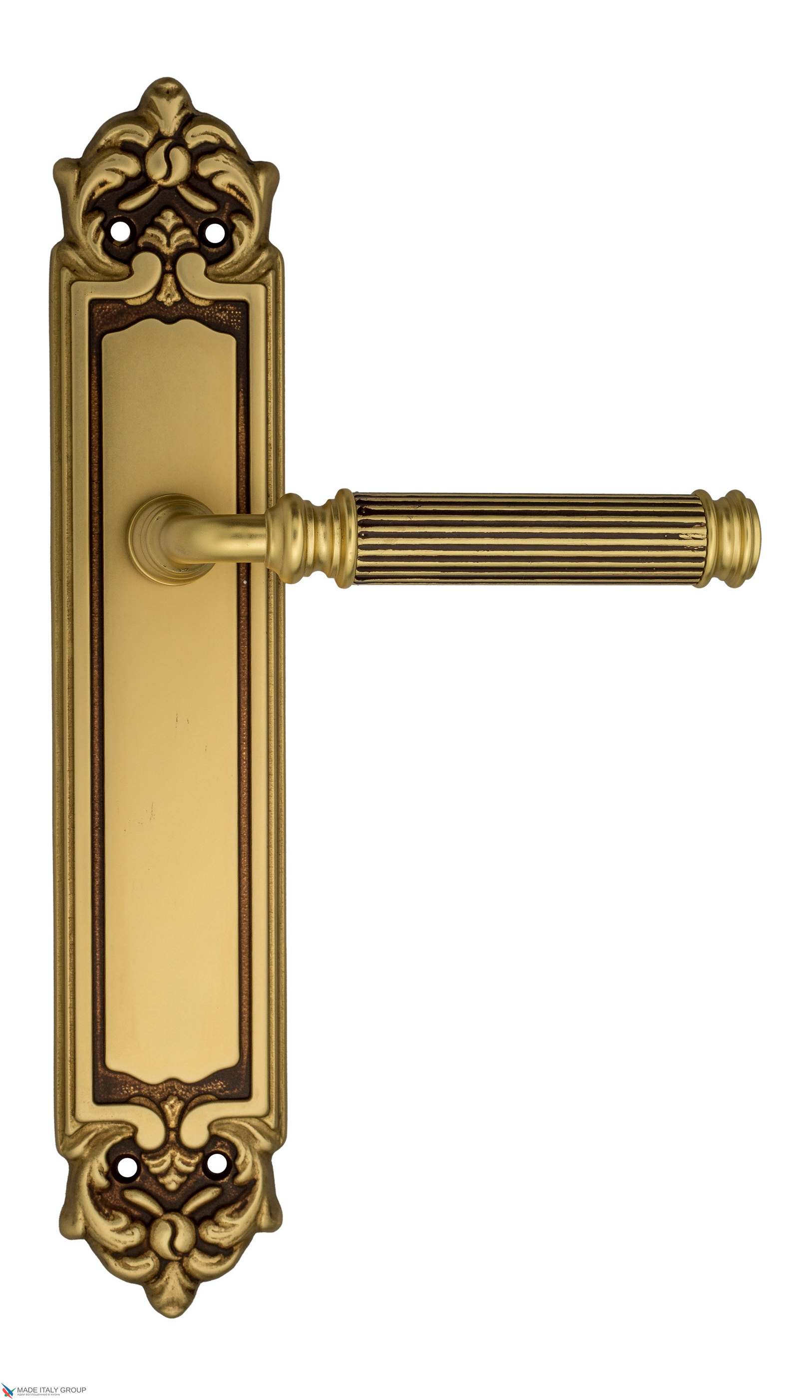 Дверная ручка Venezia MOSCA на планке PL96 французское золото + коричневый