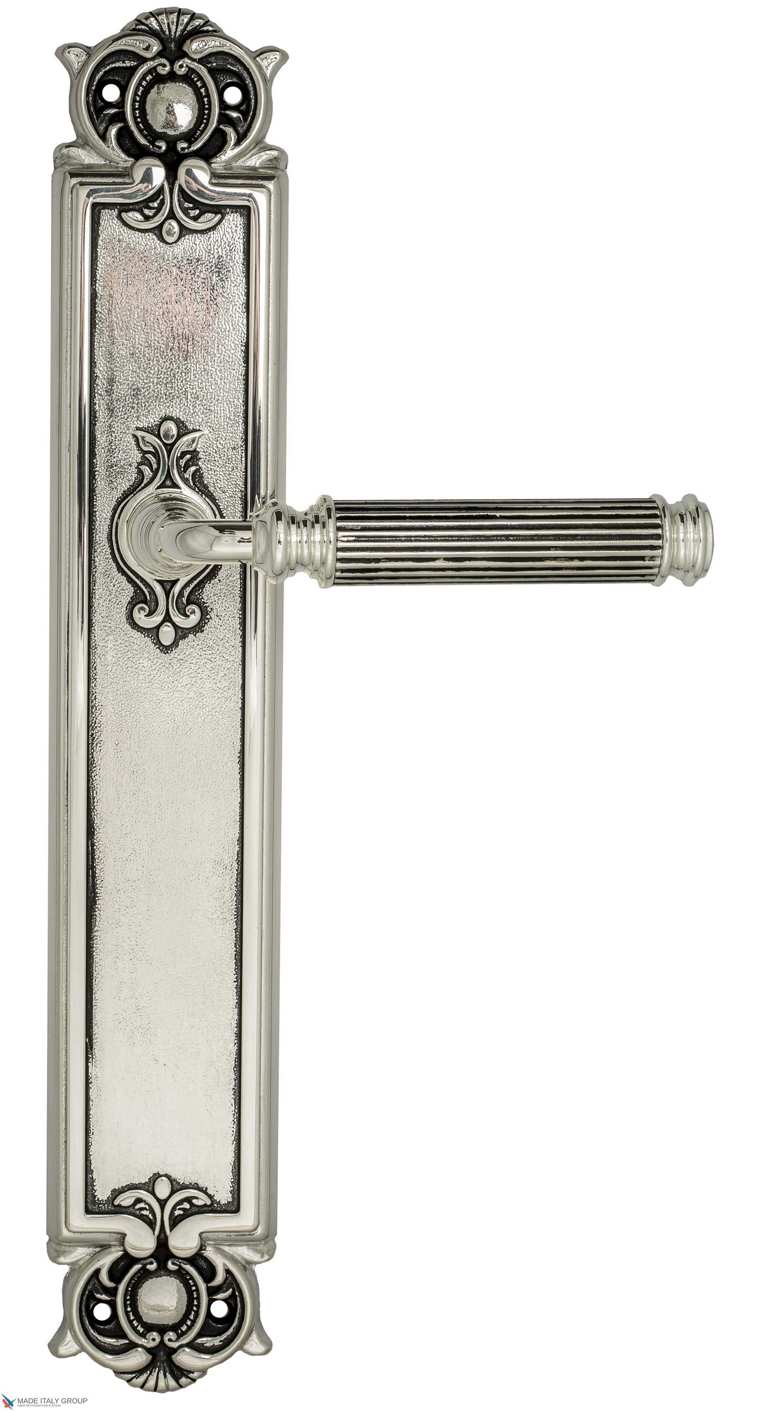 Дверная ручка Venezia MOSCA на планке PL97 натуральное серебро + черный