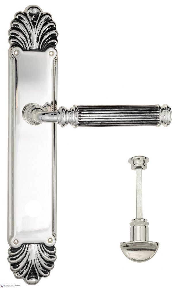Дверная ручка Venezia MOSCA WC-2 на планке PL87 натуральное серебро + черный