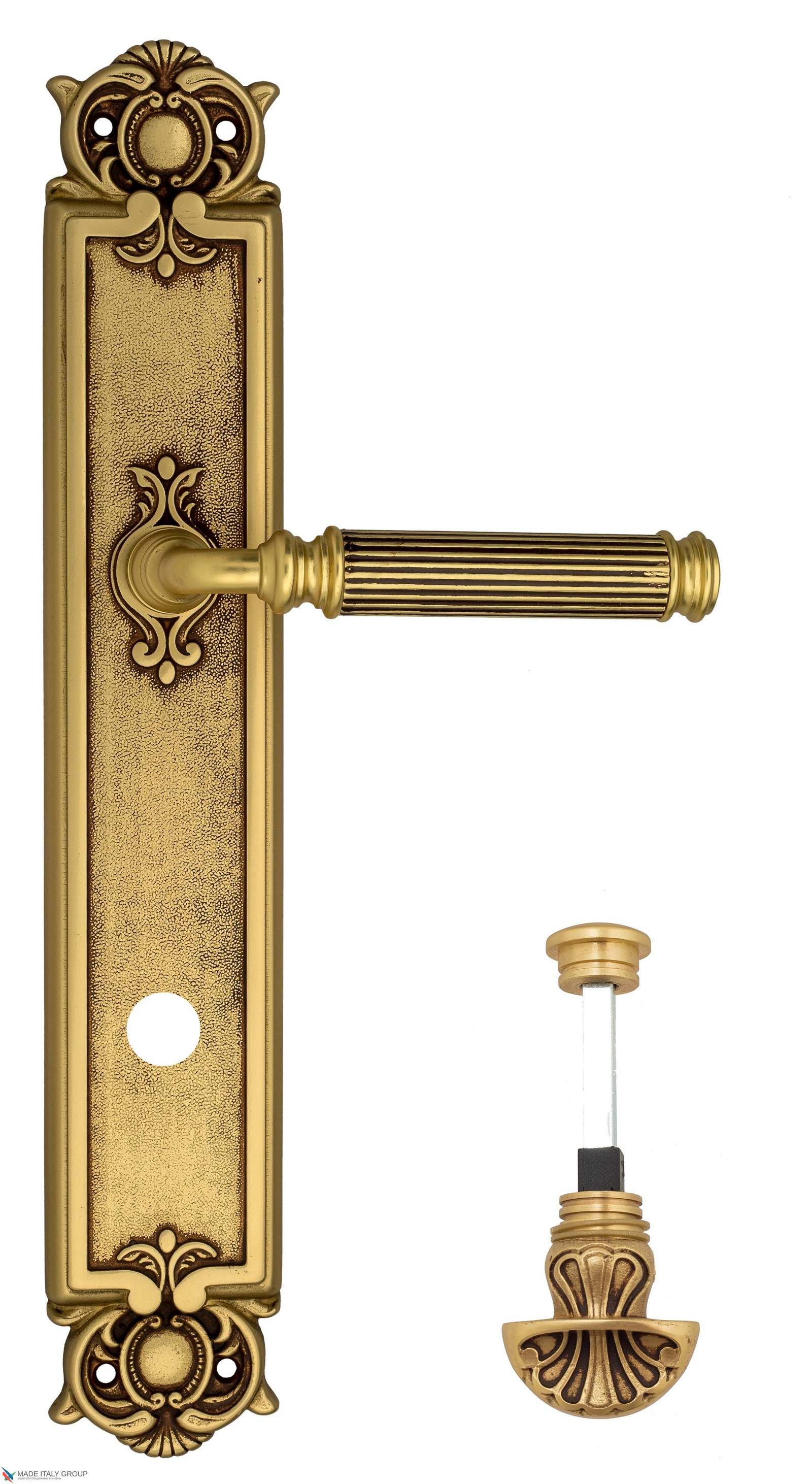 Дверная ручка Venezia MOSCA WC-4 на планке PL97 французское золото + коричневый