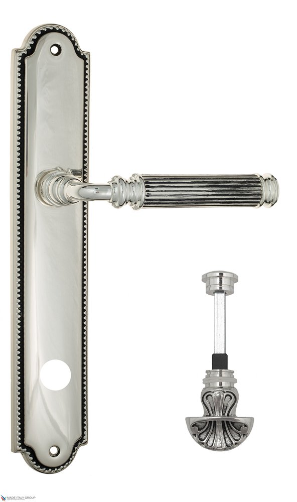 Дверная ручка Venezia MOSCA WC-4 на планке PL98 натуральное серебро + черный