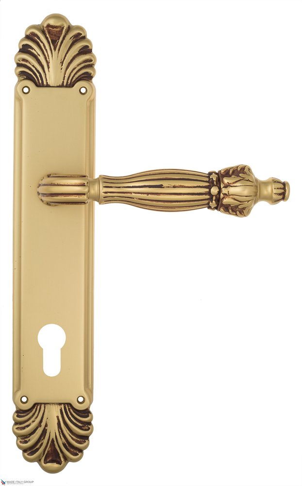 Дверная ручка Venezia OLIMPO CYL на планке PL87 французское золото + коричневый