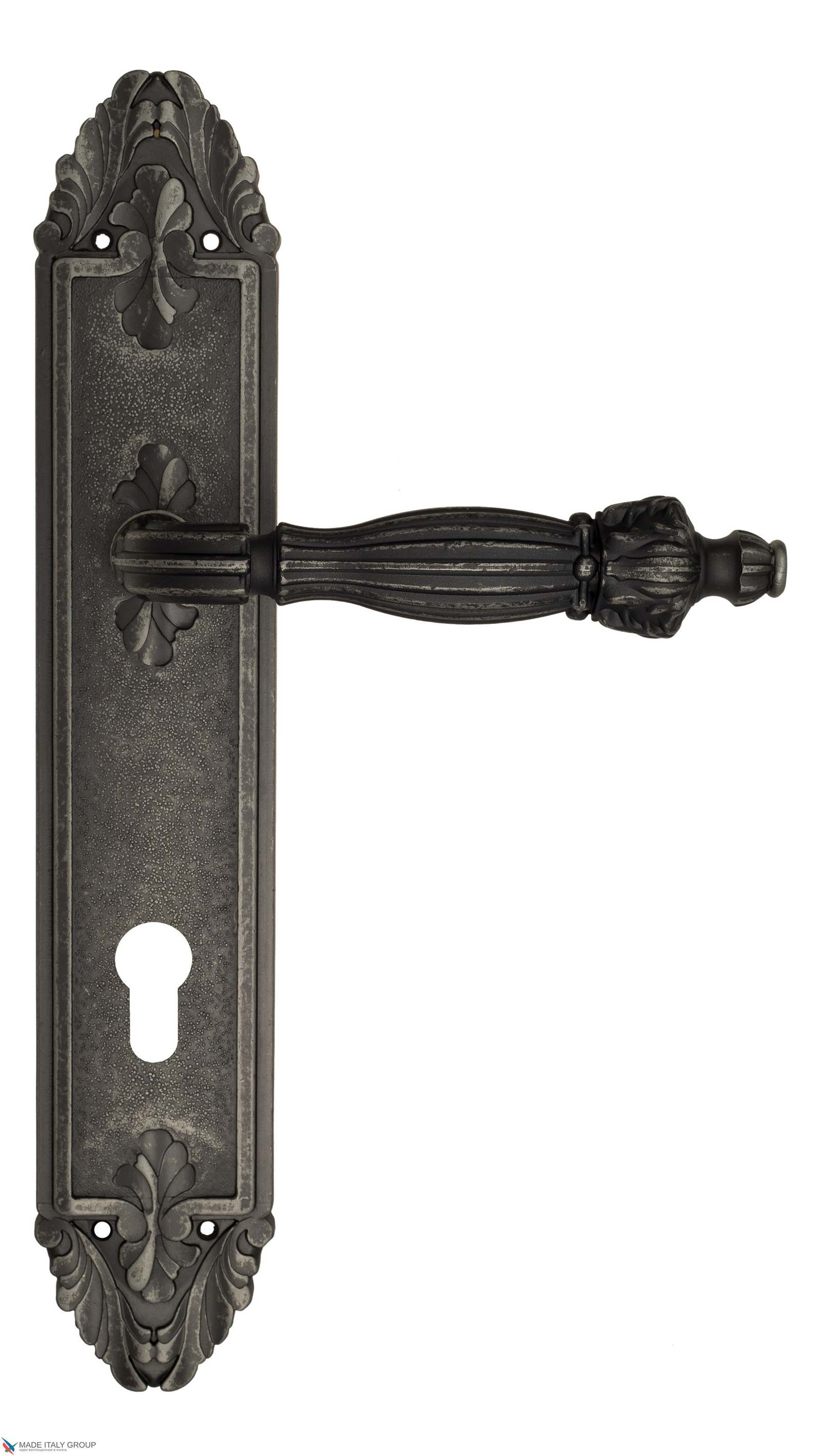 Дверная ручка Venezia OLIMPO CYL на планке PL90 античное серебро