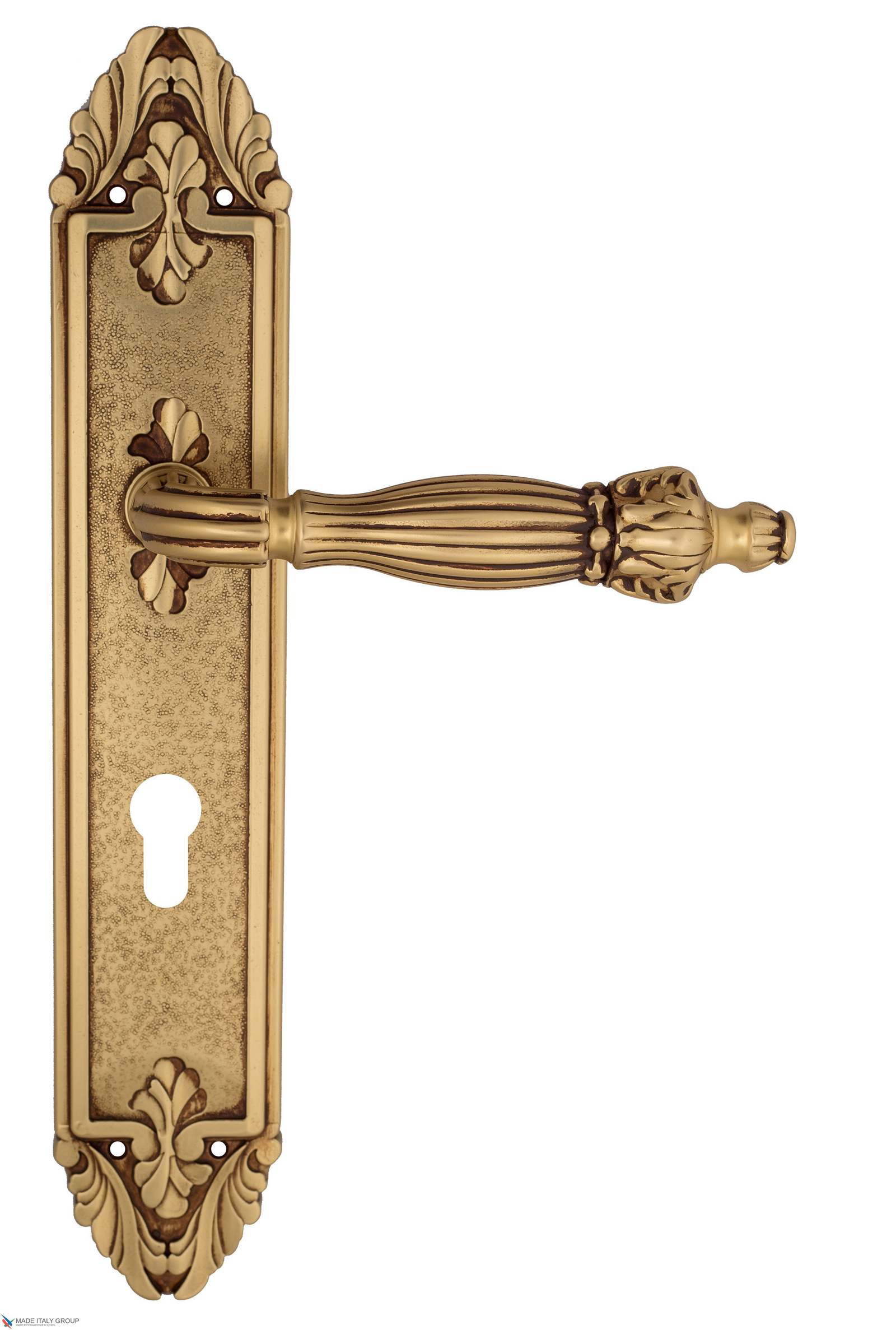 Дверная ручка Venezia OLIMPO CYL на планке PL90 французское золото + коричневый