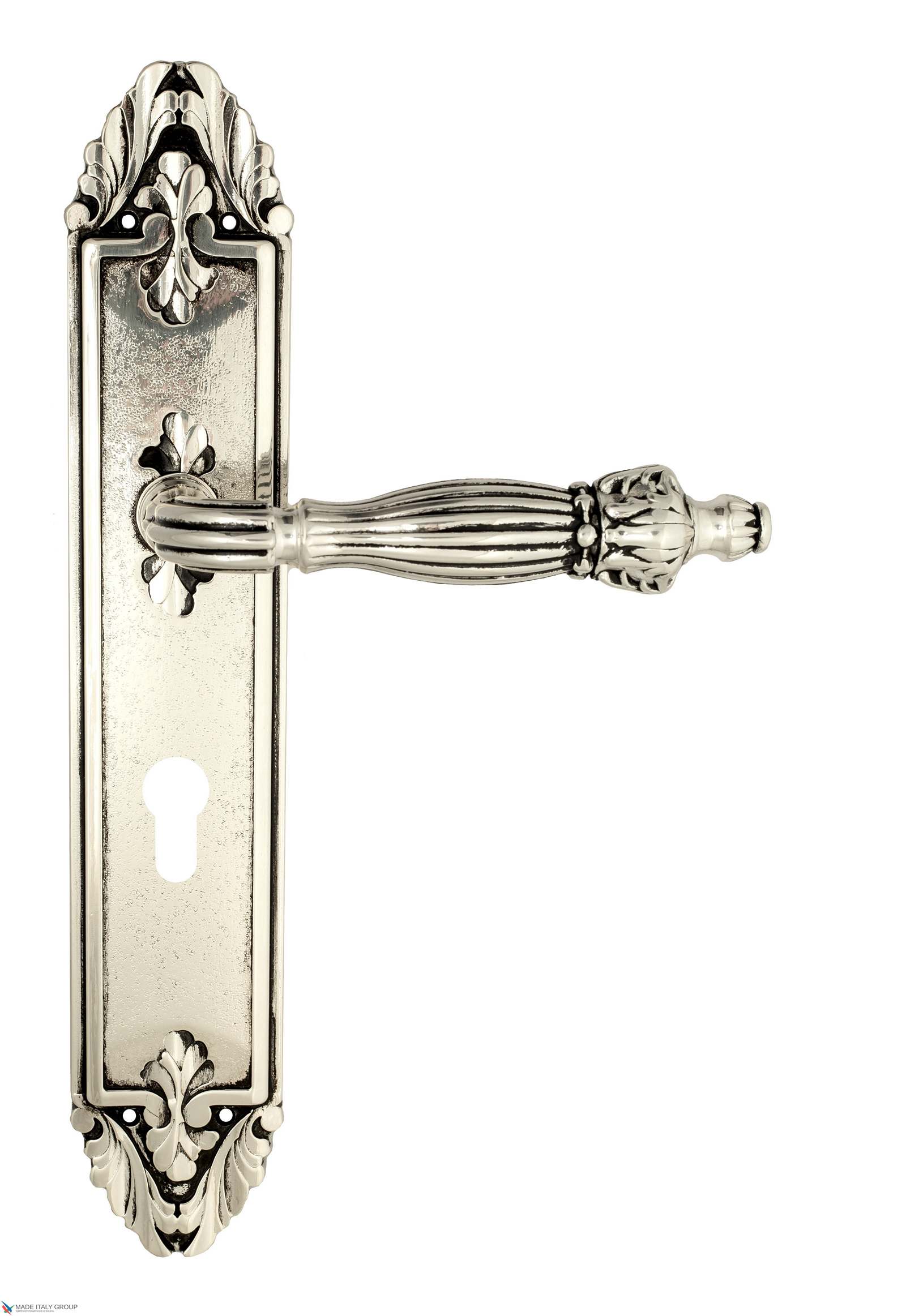 Дверная ручка Venezia OLIMPO CYL на планке PL90 натуральное серебро + черный