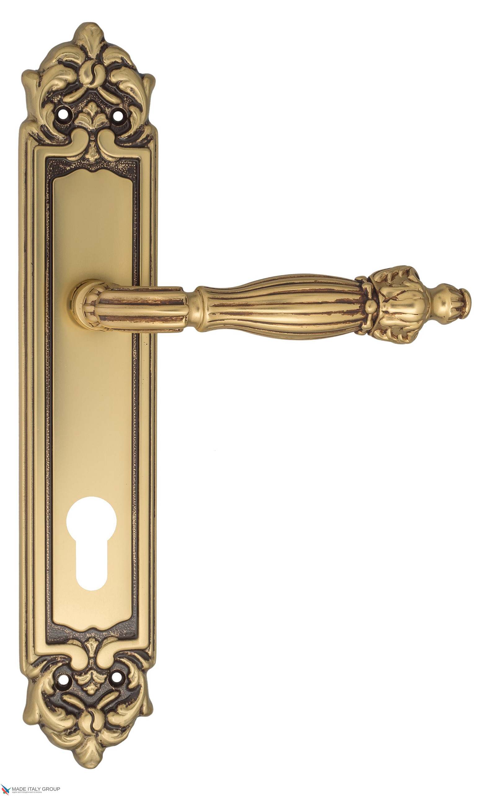 Дверная ручка Venezia OLIMPO CYL на планке PL96 французское золото + коричневый