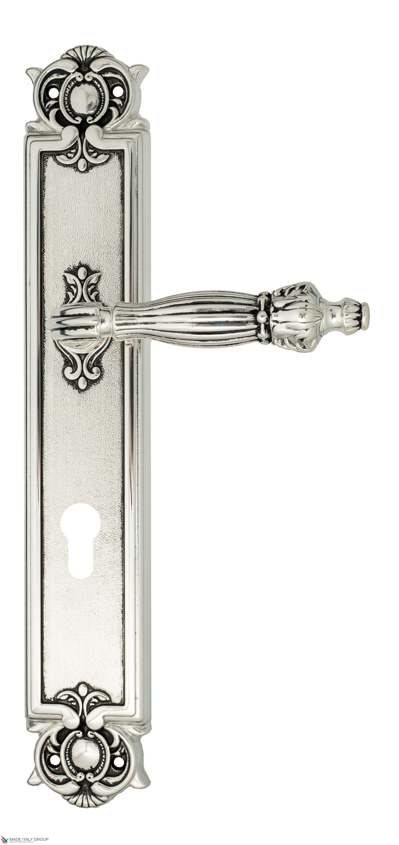 Дверная ручка Venezia OLIMPO CYL на планке PL97 натуральное серебро + черный