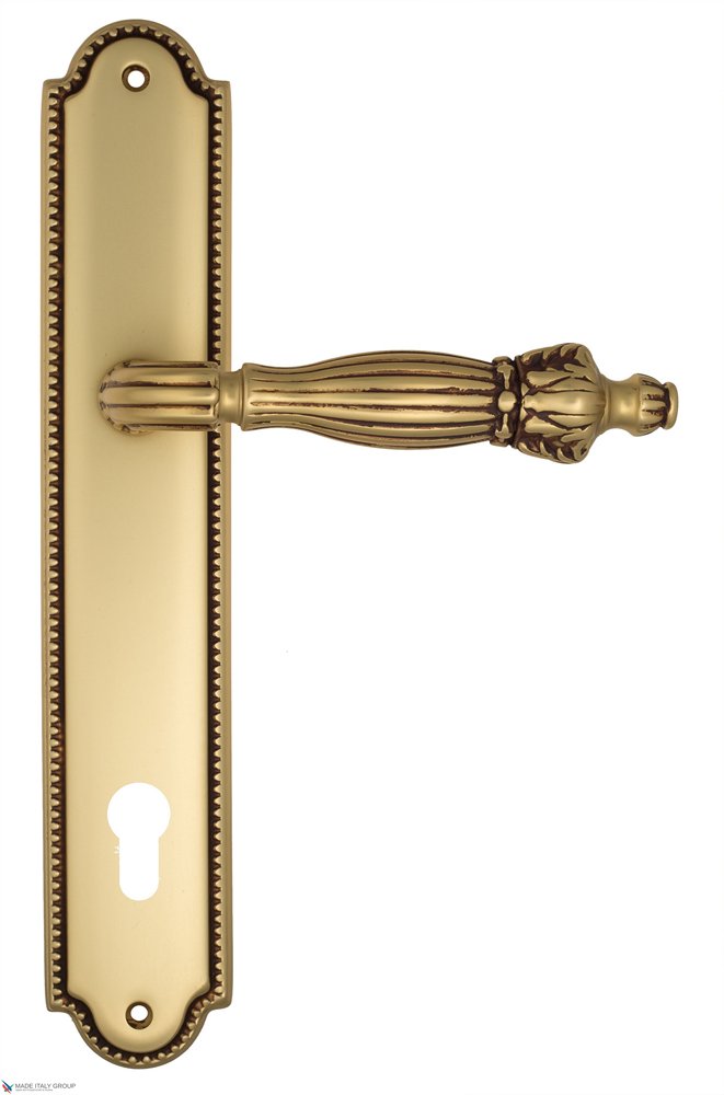 Дверная ручка Venezia OLIMPO CYL на планке PL98 французское золото + коричневый