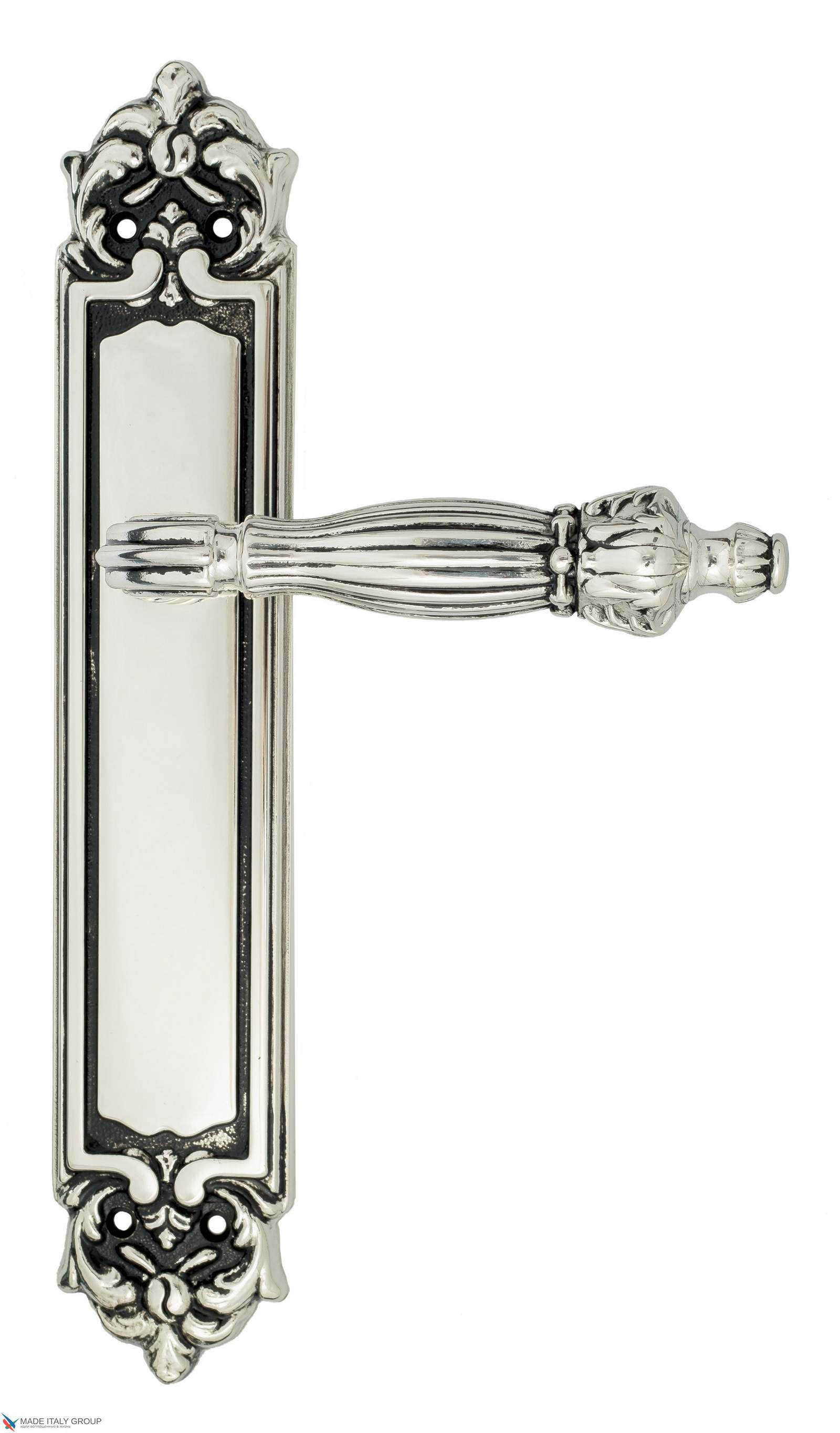 Дверная ручка Venezia OLIMPO на планке PL96 натуральное серебро + черный