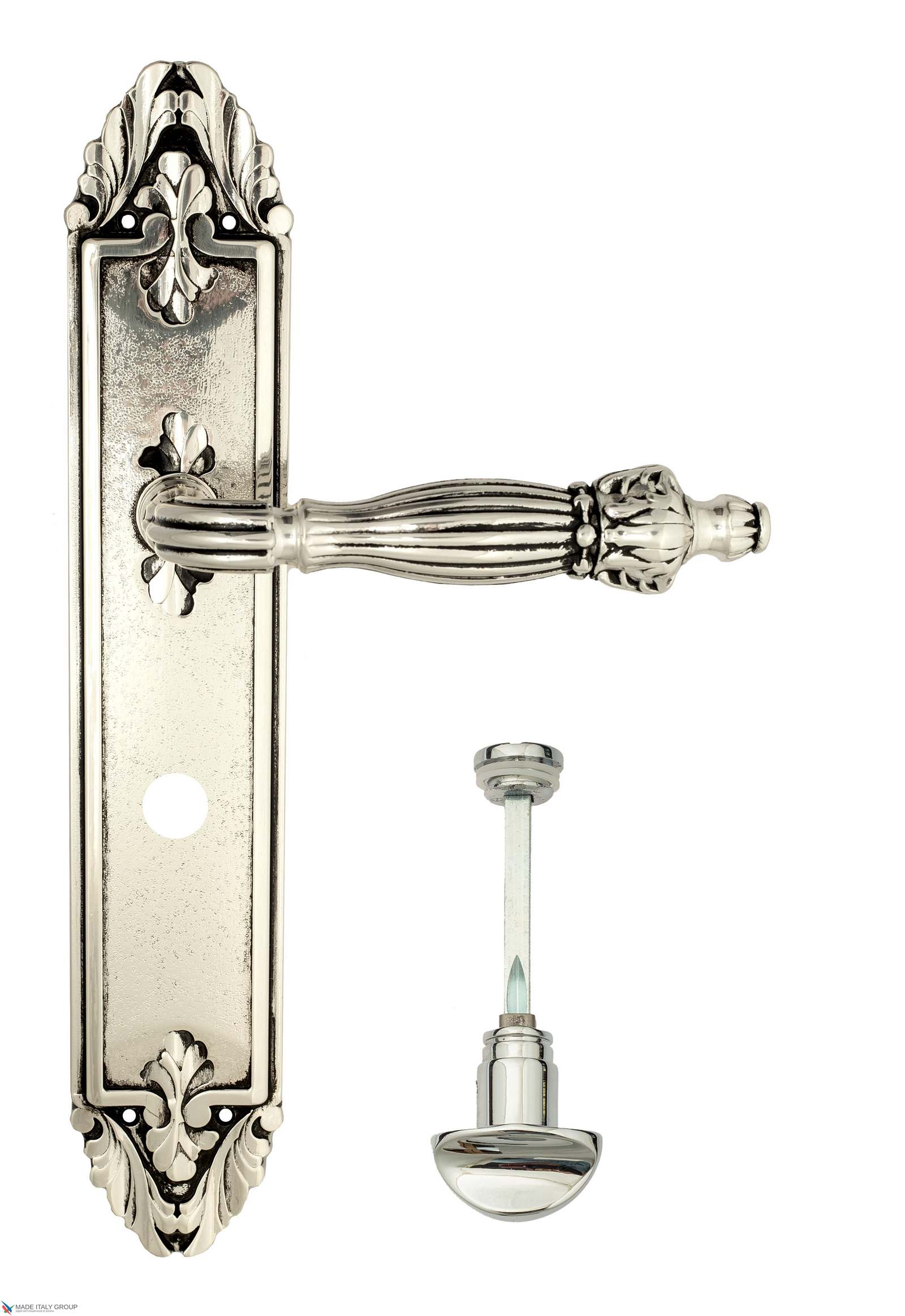 Дверная ручка Venezia OLIMPO WC-2 на планке PL90 натуральное серебро + черный