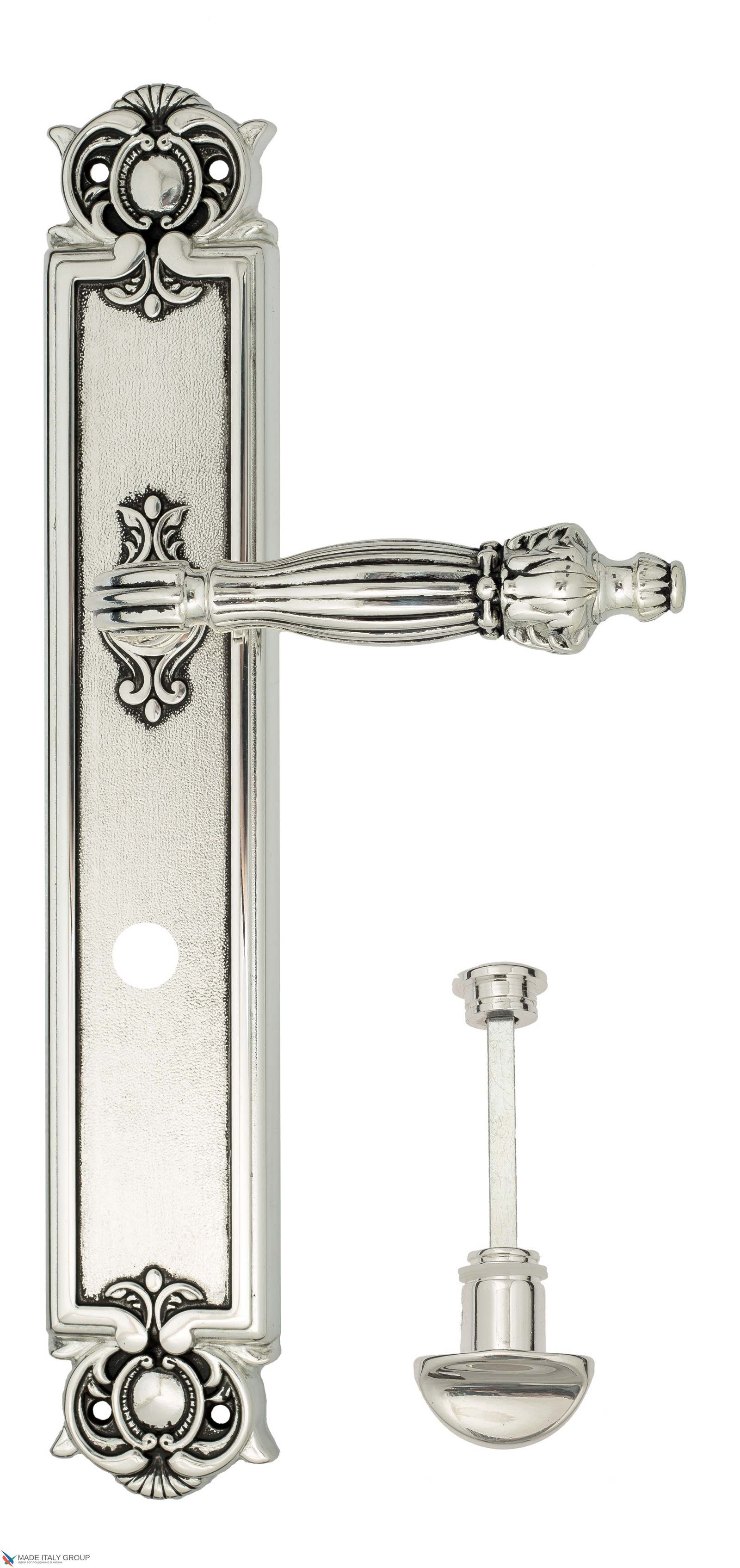 Дверная ручка Venezia OLIMPO WC-2 на планке PL97 натуральное серебро + черный