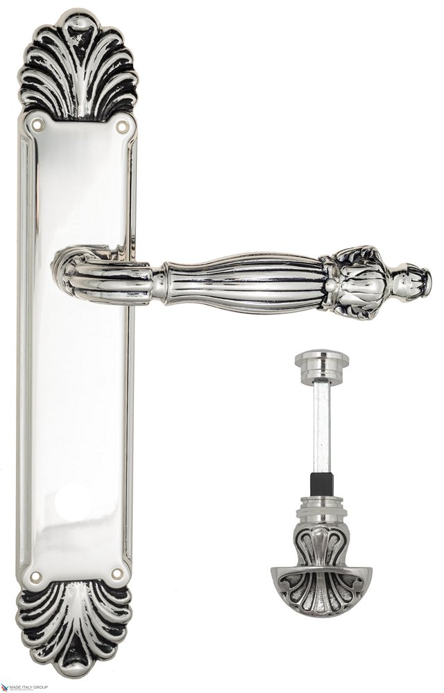 Дверная ручка Venezia OLIMPO WC-4 на планке PL87 натуральное серебро + черный