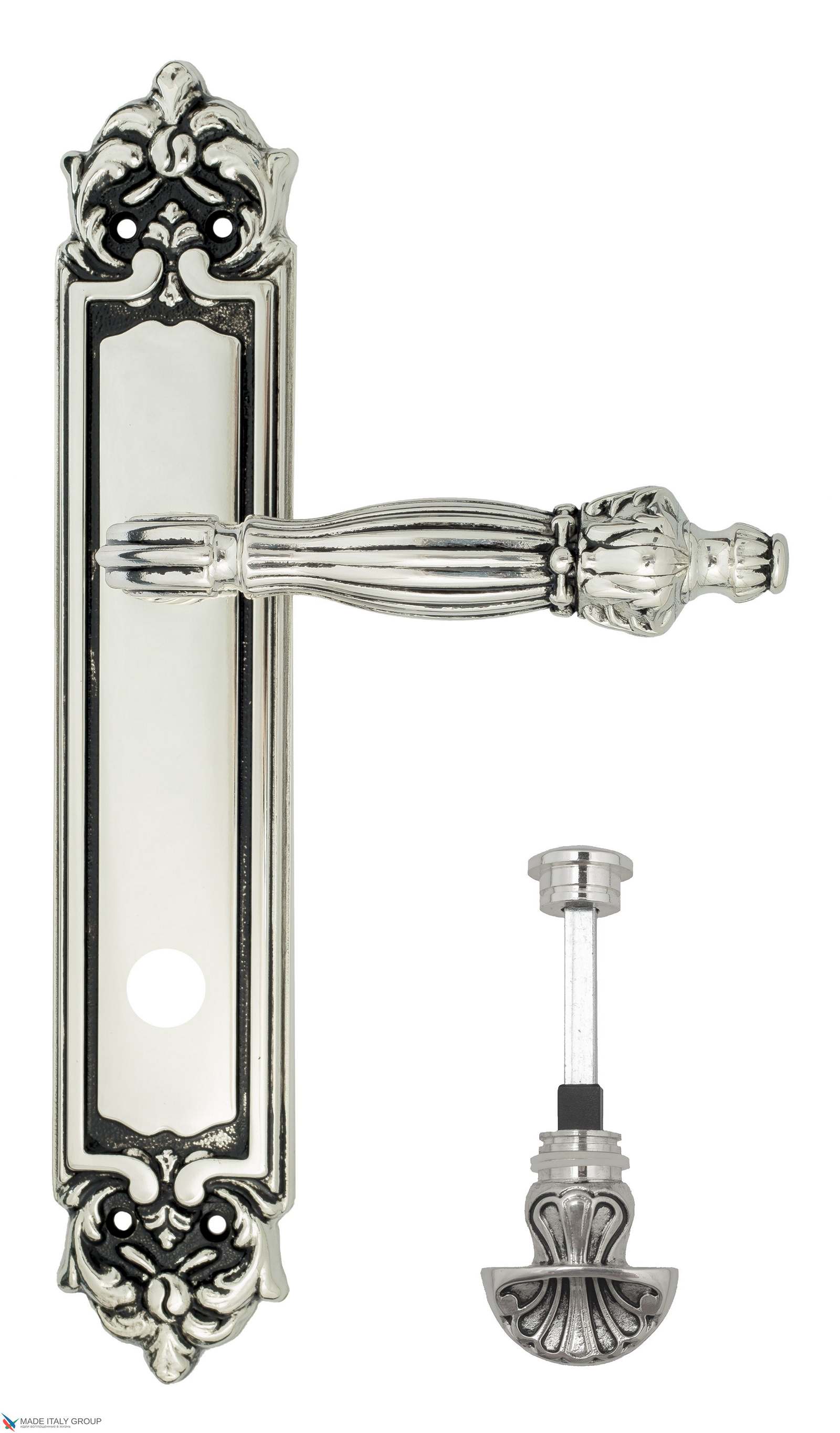Дверная ручка Venezia OLIMPO WC-4 на планке PL96 натуральное серебро + черный