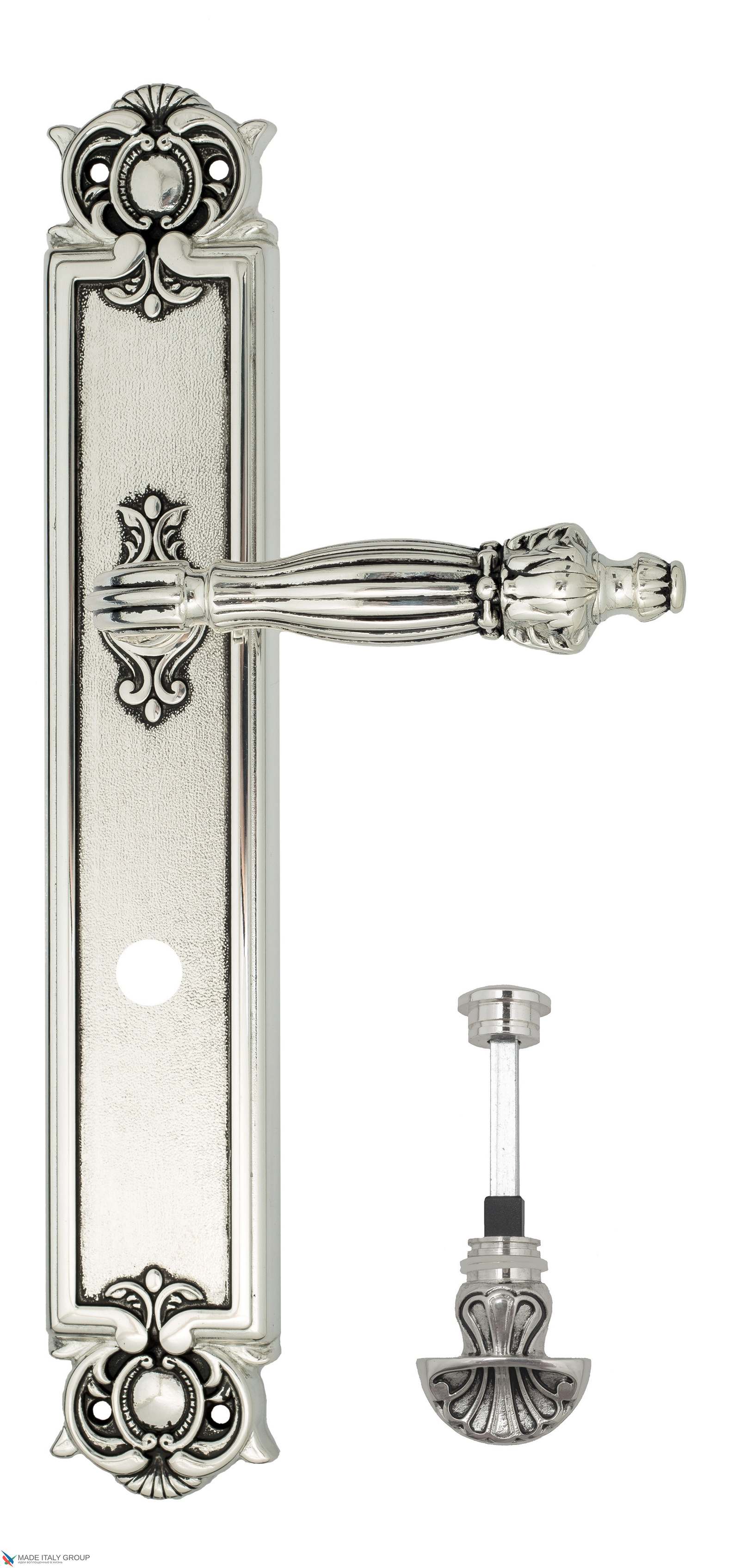 Дверная ручка Venezia OLIMPO WC-4 на планке PL97 натуральное серебро + черный