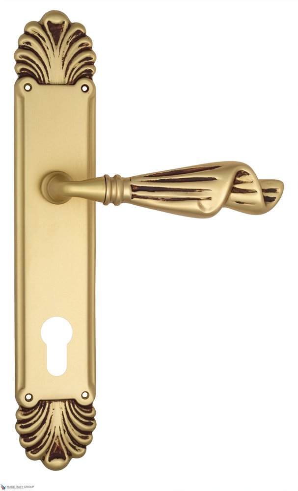 Дверная ручка Venezia OPERA CYL на планке PL87 французское золото + коричневый