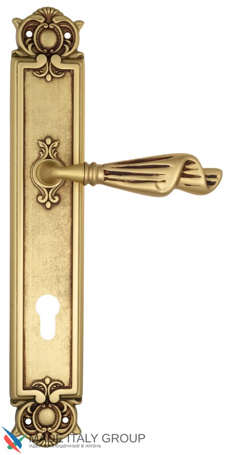 Дверная ручка Venezia OPERA CYL на планке PL97 французское золото + коричневый