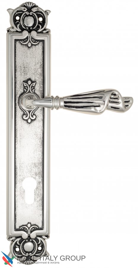 Дверная ручка Venezia OPERA CYL на планке PL97 натуральное серебро + черный