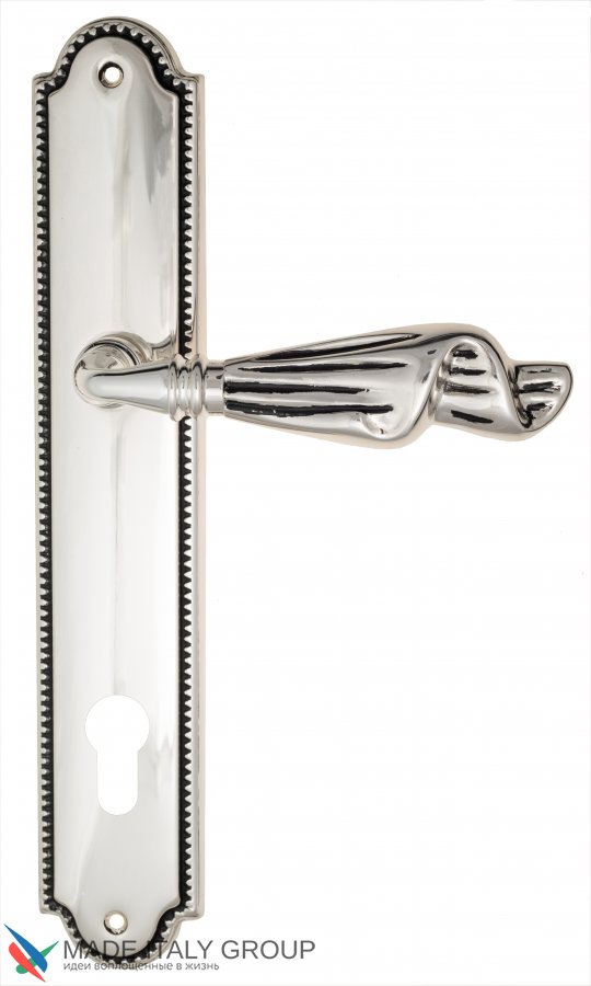 Дверная ручка Venezia OPERA CYL на планке PL98 натуральное серебро + черный