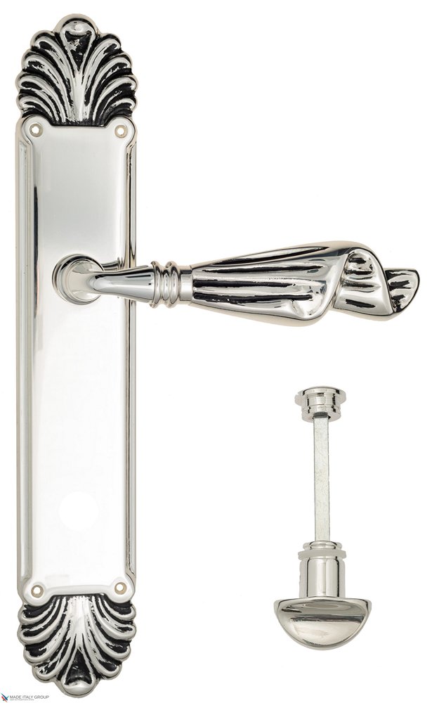 Дверная ручка Venezia OPERA WC-2 на планке PL87 натуральное серебро + черный