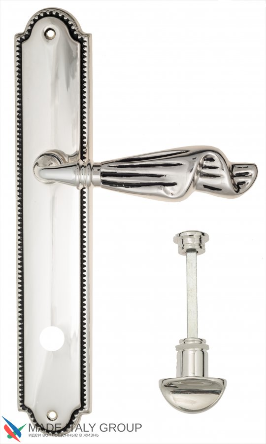 Дверная ручка Venezia OPERA WC-2 на планке PL98 натуральное серебро + черный