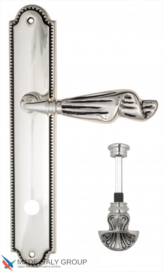 Дверная ручка Venezia OPERA WC-4 на планке PL98 натуральное серебро + черный