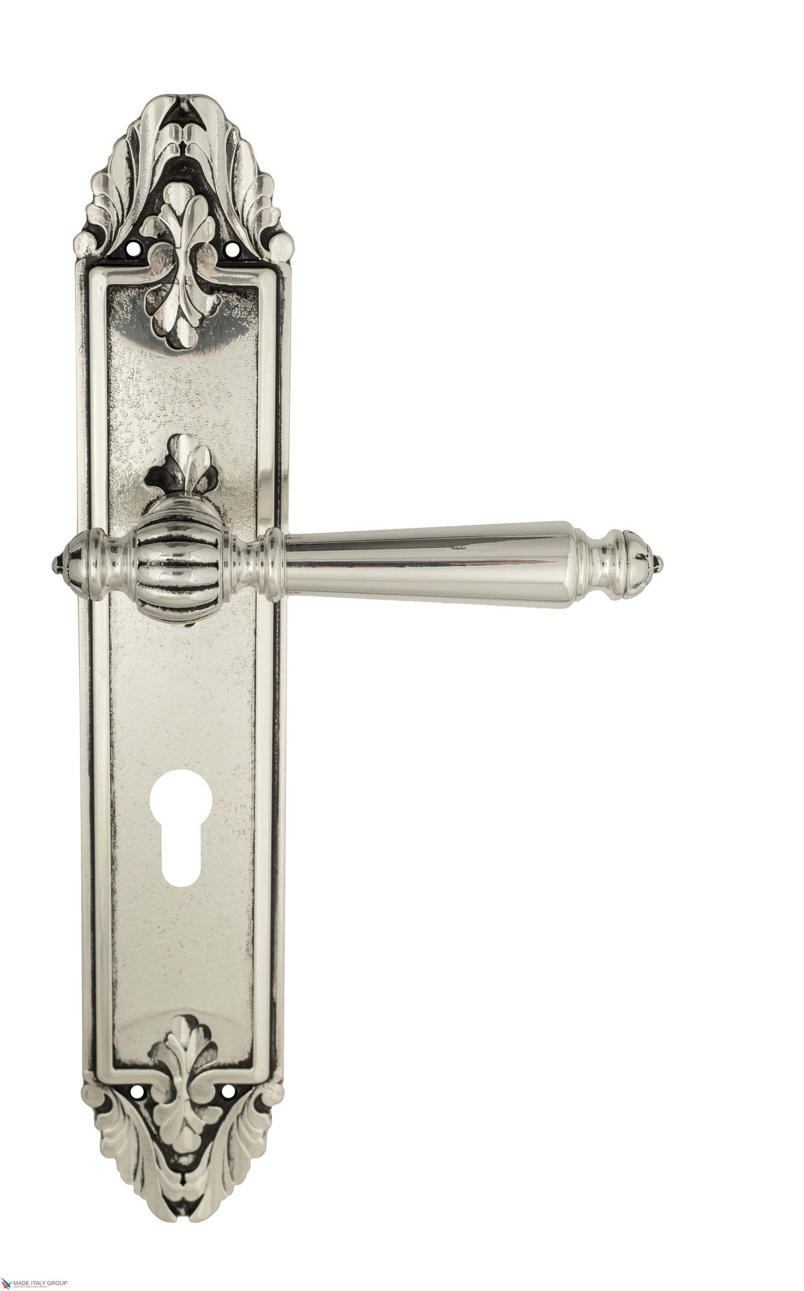 Дверная ручка Venezia PELLESTRINA CYL на планке PL90 натуральное серебро + черный