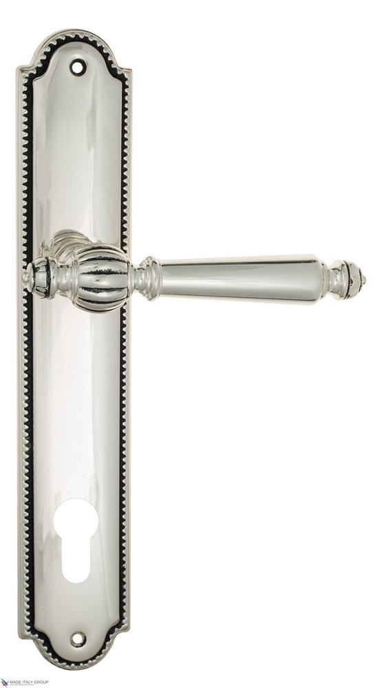 Дверная ручка Venezia PELLESTRINA CYL на планке PL98 натуральное серебро + черный