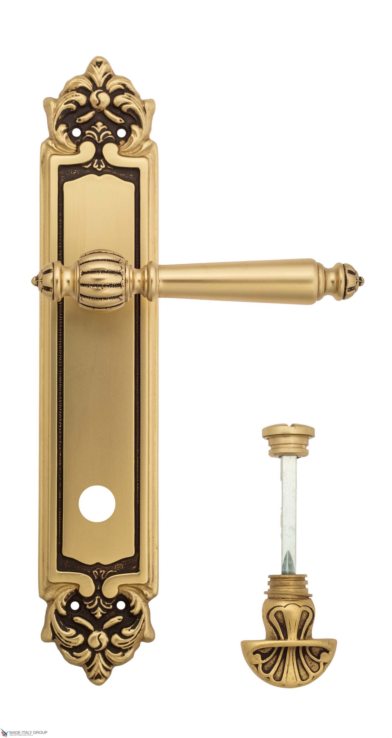 Дверная ручка Venezia PELLESTRINA WC-4 на планке PL96 французское золото + коричневый