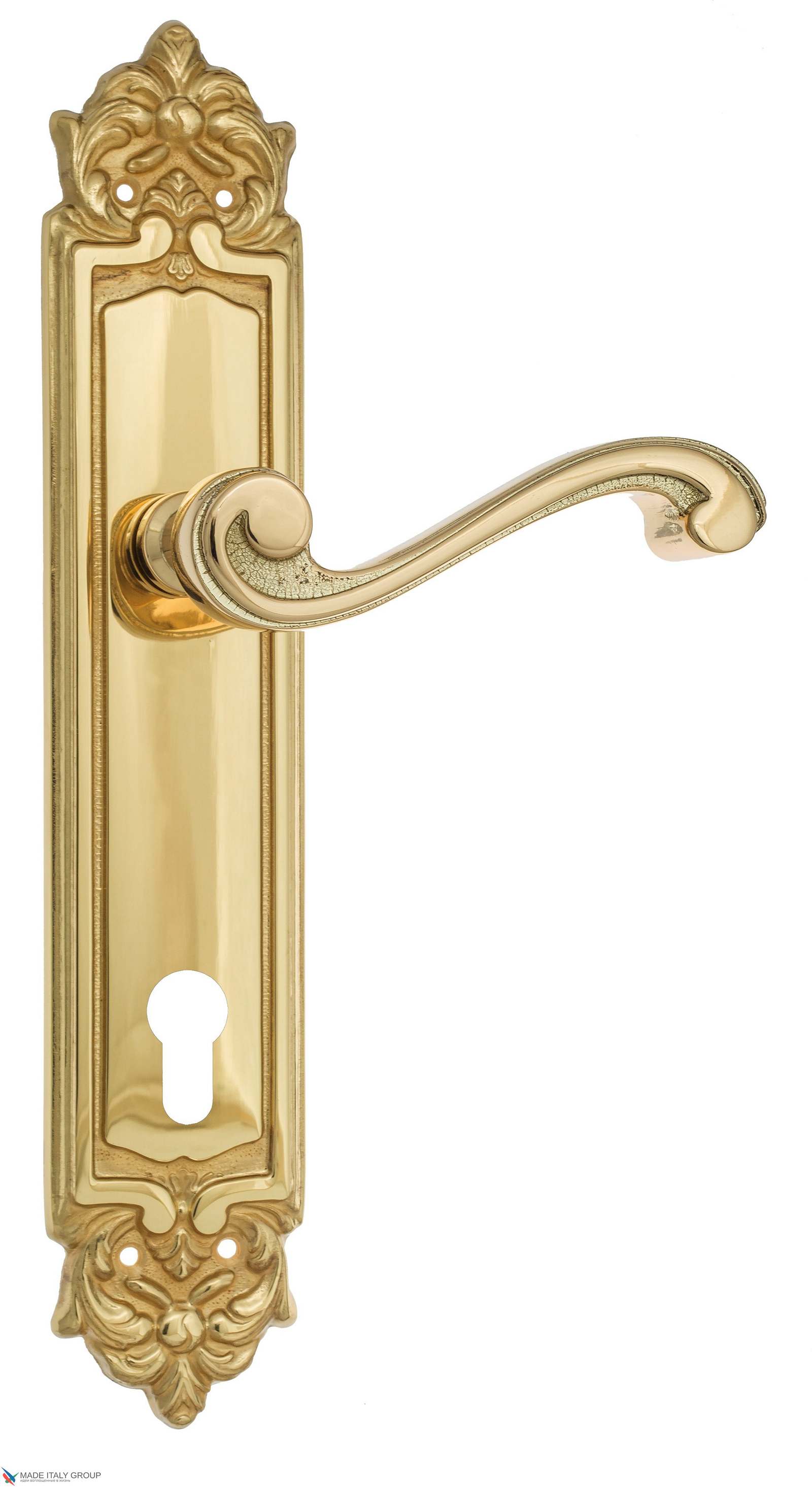 Дверная ручка Venezia VIVALDI CYL на планке PL96 полированная латунь