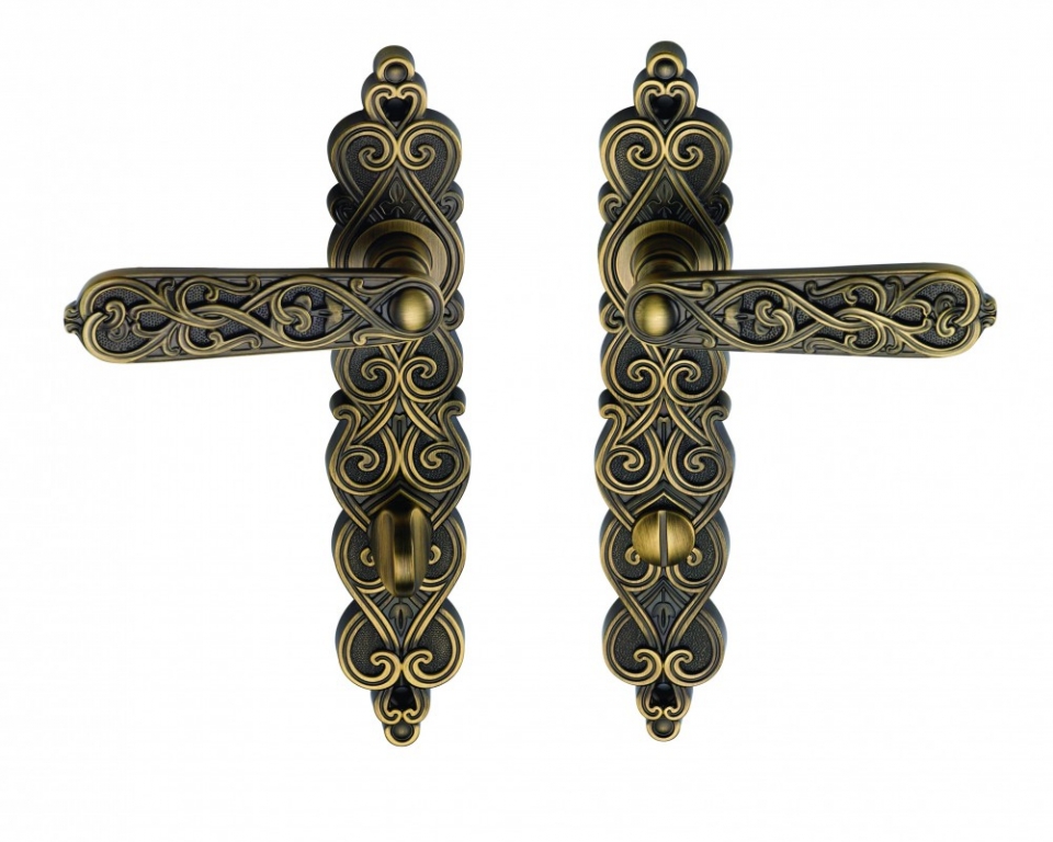 РУЧКА ДВЕРНАЯ НА ДЛИННОЙ ПЛАНКЕ ARABESCO ANT. COFFEE (PS) GENESIS