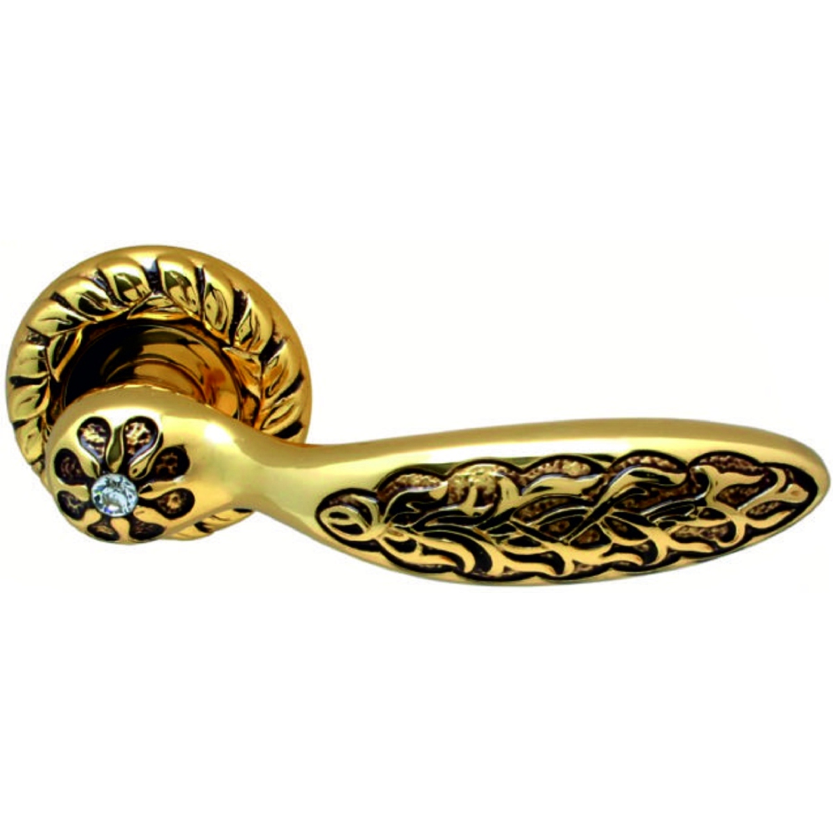 Дверная ручка на розетке 1065 Shamira 60 мм Золото 24К + коричневый + сваровский