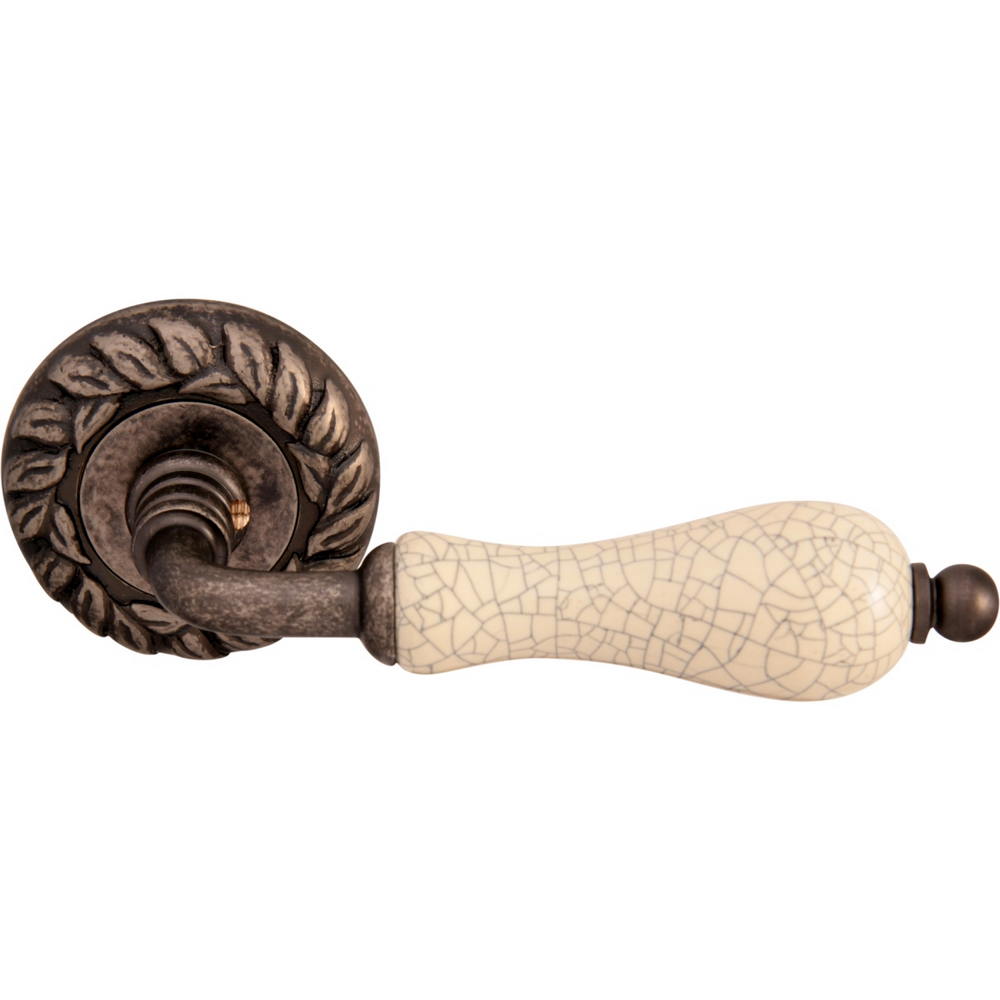 Дверная ручка на розетке 179 60 мм Ceramic Античное серебро + керамика