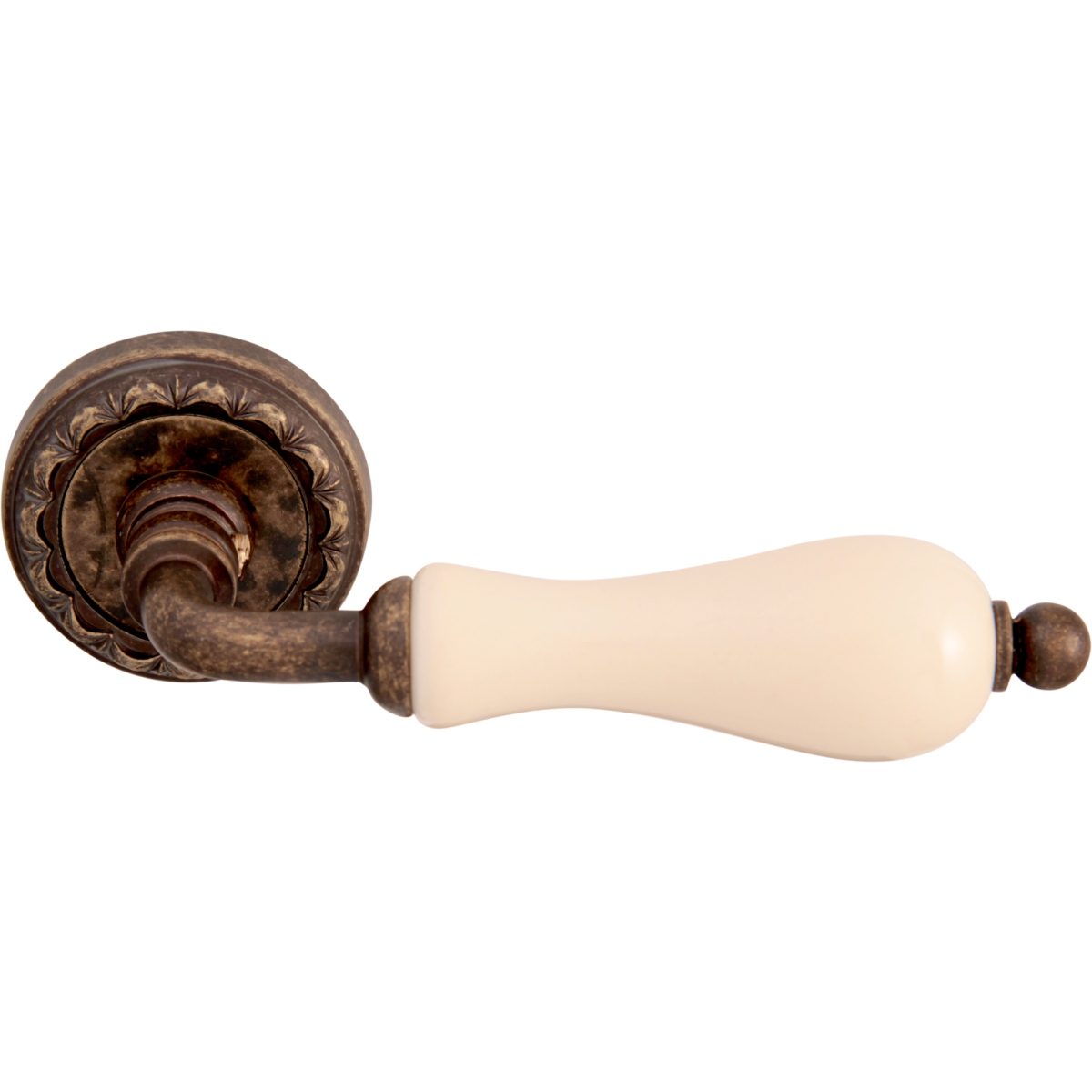 Дверная ручка на розетке 179 D Ceramic Античная бронза + керамика БЕЖ