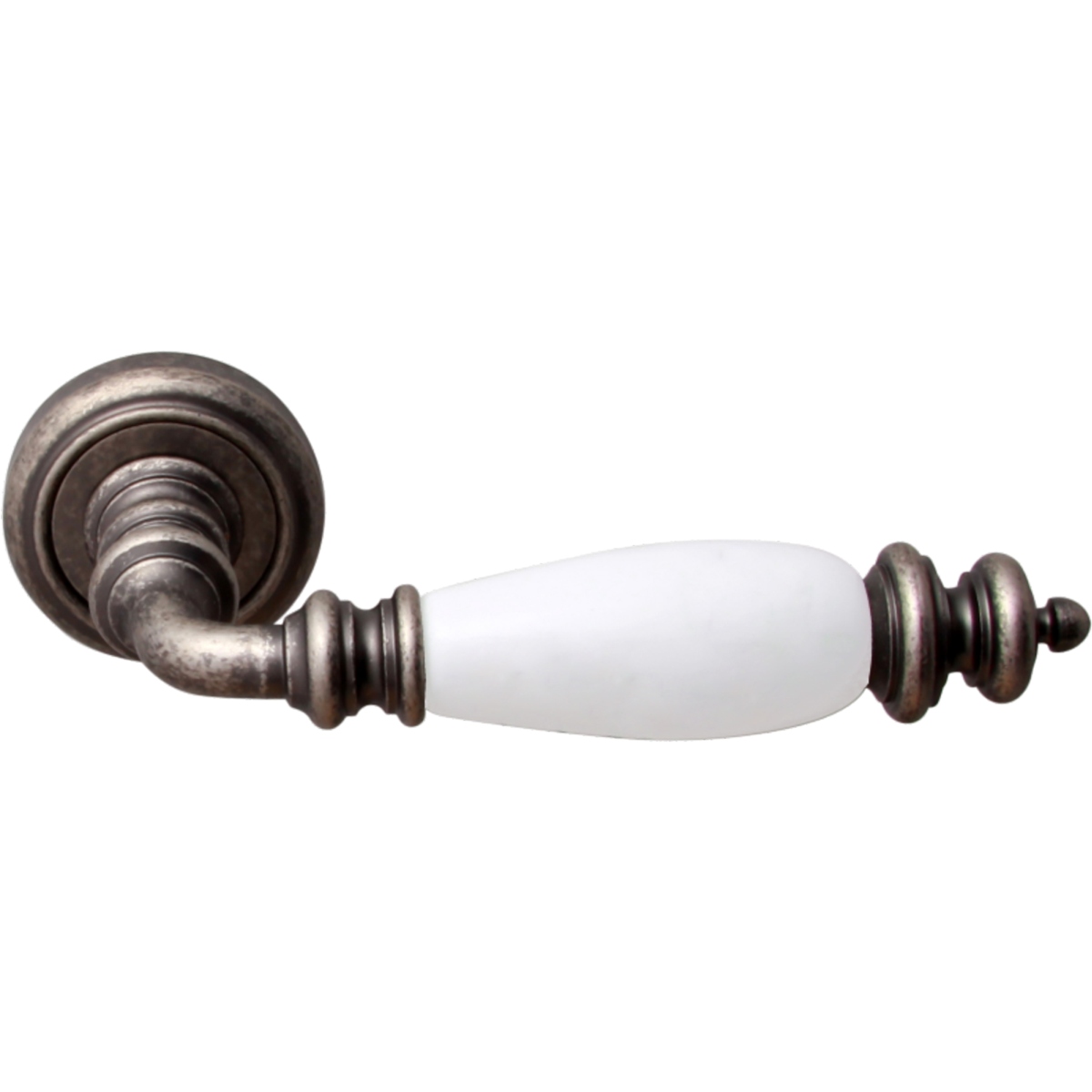Дверная ручка на розетке 473 V Siena Античное серебро + керамика белая