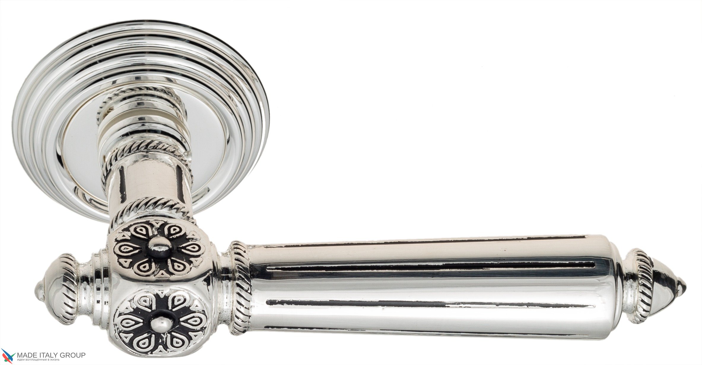 Дверная ручка Venezia CASTELLO D8 натуральное серебро + черный