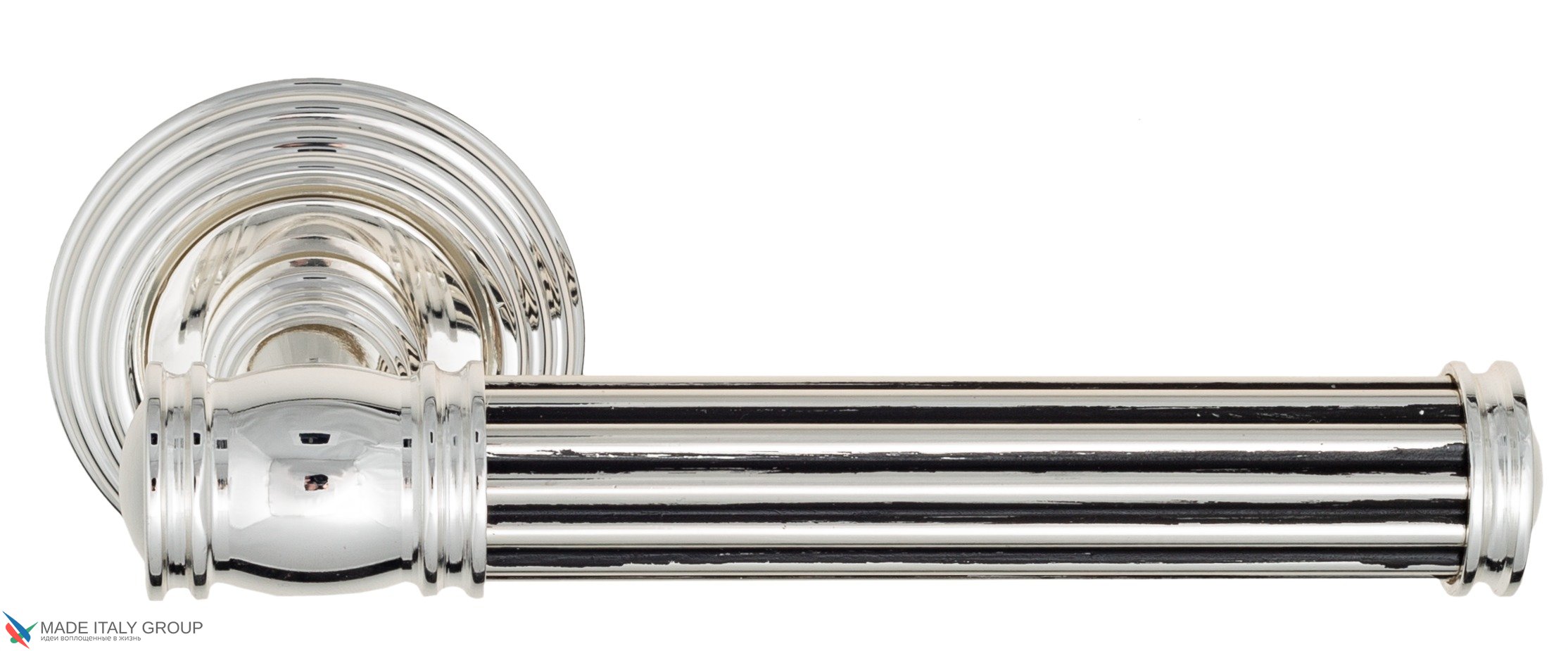 Дверная ручка Venezia IMPERO D8 натуральное серебро + черный