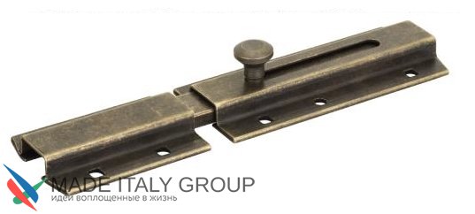 261OA20 Задвижка дверная усиленная, плоский ригель ALDEGHI 200мм античная бронза
