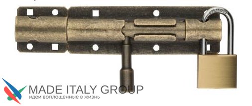 267OA30 Задвижка дверная усиленная, круглый ригель, с отверствием для навесного замка ALDEGHI 300мм античная бронза