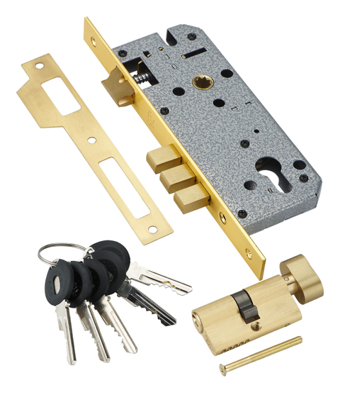 Замок врезной с секретным двухрядным цилиндром LOCK 4585 5-60B D GOLD ADDEN BAU