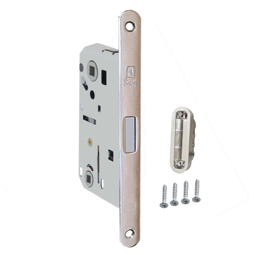 Bonaiti Механизм вж 18мм B-FORTY WC 18*196 пол.никель + Bonaiti Art GF45 Ответная планка B-FORTY пол.никель + саморезы хром 4шт